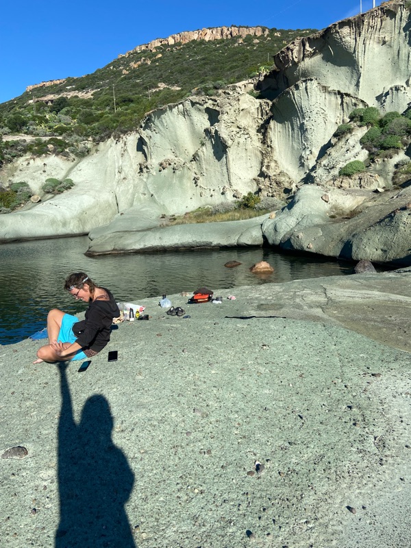 It was at the hotsprings where another French man came over and broke the news to me about there only being a ferry either the next day (the 10th) or in 10 days time (the 19th) I felt panicked… was this another omen?! Here he was telling me, with a ride if I needed it! I thought no, I hadn’t seen anything I had wanted too yet and leaving tomorrow felt too fast. Then in came my logical brain persisting, but you only have less than a month to make it to Morroco if you don’t go now! Logic warned. Kloe gave me a coin to flip. The French man had a whole day and a half to make the 30 minute drive to Porto Torres, yet he impationantly sat there, tapping his foot, waiting for me, not saying to take a minute or give me some space and it was actually him who made my decision, I didn’t want to spend 12 hours on a ferry with this guy and after all that I returned to what I had always known and said finally” Thanks but I’m staying.” Proudly. I had made a decision.