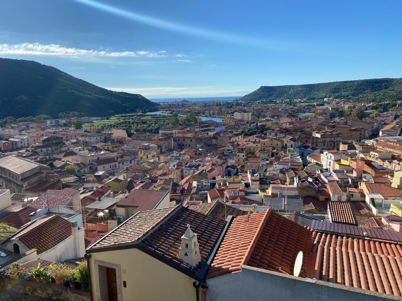We decided it was time to “vamos a la playa” and we biked our way to the coast, through steep kilometers  of “Robin roads” with cows who’s sweet eyes bulged when they saw us despite being 4 x our size. I finally saw thick trees, the first real forests i had seen in all of Italy (“not Italy”) and we ended up in the charming town of Bosa, with colourful winding streets, long stretches of beach and natural swimming pools in the sea and mountains to climb. By this point I wasn’t feeling like myself, I felt wavy and scattered and was losing things, including the pad of my thumb, which got pinched off when I used my hand to put down my kickstand on a beautiful cliffs edge. If I knew how to cry (another thing I’m working on) I would have but I was so shocked I didn’t made a sound. Eniko told me my reaction was so weird and used a rolling paper as a tensor bandage and it worked like a charm, he told me the closest hospital was 50k’s away and that he felt it was a good idea I bike ahead and check if I need stitches. So we parted ways and I powered up the mountains faster than I thought I knew how to. The ride was the most beautiful bike ride of my life. Magical with red rock to my right and green little hills that stopped abruptly and turned into white rocked cliffs hovering above the turquoise sea all along a