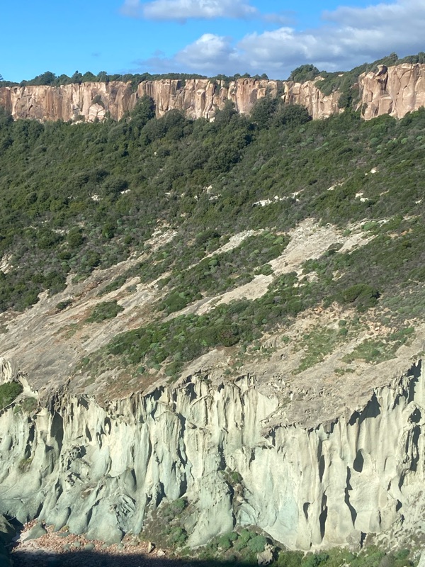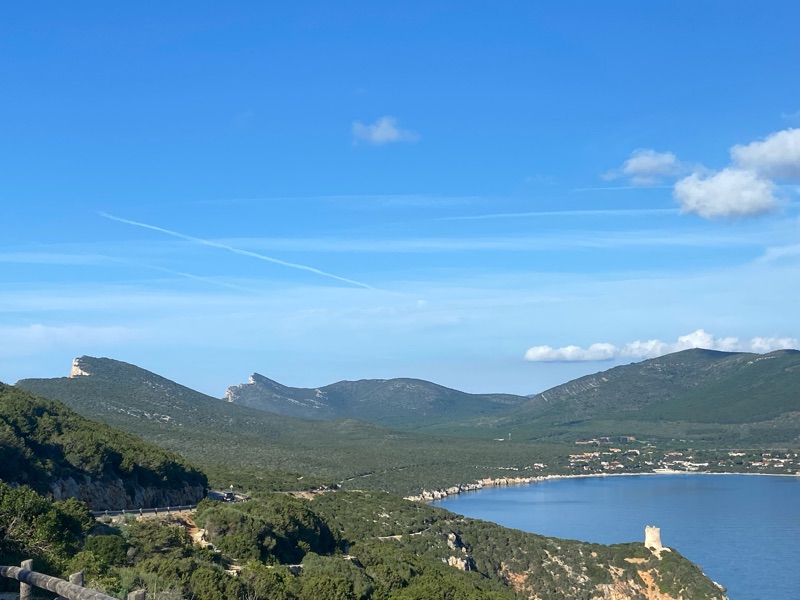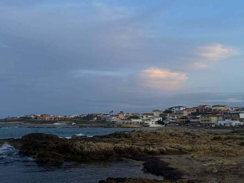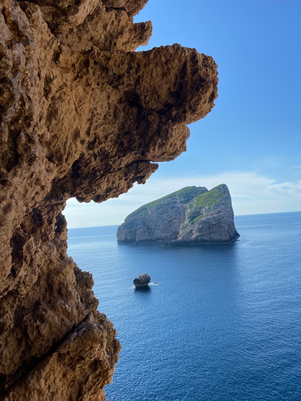 More rain was set to come and Kloe found us a Warmshowers near Porto Torres the port town where we needed to be to catch our long awaited ferry. This was where we had planned to meet back up as they expressed they wanted some alone time. I felt sad at first, alone for the first time in awhile, but I pulled myself up by my brand new waterproof shoes and had an incredible day, riding around Capo Caccia, a famous cliff with a church on top that reminded me of PercΓ© Rock in GaspΓ©sie. It was a hard bike ride up a hill that when I got to the top found out it’s not a church but a military base that you can’t actually access… Zuut Alors! Luckily the panoramic spot a ways down was very cool and made up for it.