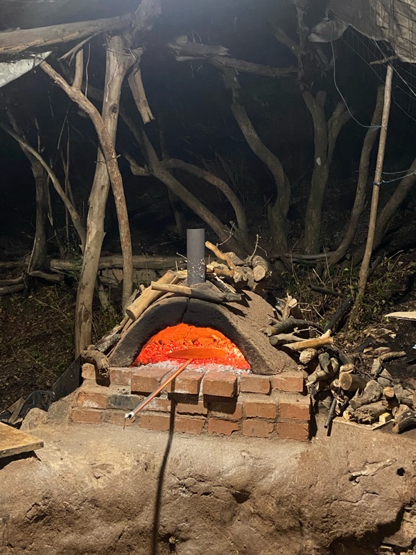 We got to Christians (the warmshower) and it was four trailers scattered along a rolling hill with an outdoor kitchen surrounded by glass with a white rocked floor. There was a park with jagged cliff peaks and a waterfall right next door. A fire was roaring when we showed up next to a pizza oven. Christian showed me to a trailer with a single cot he said we could share, there was an outdoor shower with no water at this time of year, and the compost toilet. Christian was around 50 years old, an argentian with a big personality who smoked a lot of weed. He had biked from Ushuaia to Seattle and told a story long and slow, taking up space and setting a pace that made you listen. It was clear he immediately did not like Davide, taking in his half shaved face and bike set up and it was clear Davide immediately felt uncomfortable around Christian. Davide’s whole personality began to concave into itself but despite that he asked if we could have a pizza night. Christian slowly said “Yes, okay… but it takes 3 hours to fire the oven. I have a gluten allergy so I will not be partaking and please, be very careful.” Christian and I talked a lot and he said he wasn’t happy here anymore and was waiting for the journey to move him along. He had some wild stories from his biking days and he too asked what ridiculous items we carried around, and which were the most useful. I said mine was my journal, irreplaceable and the thing I use the most. We ate the pizza at 11 pm, somehow the guy had pulled it all together, despite not knowing how to start a fire, and we all went to bed planning to do a deeper clean in the morning when we could see. That night we slept cuddled up on the cot, he was a physically affectionate person from the first moment I met him, touching my hair and putting his arm around my shoulder at the top of the castle, his face very close to mine and I wasn’t sure what the vibe was so I asked “are you trying to kiss me?” And he just looked at me and said, I kid you not said, “My body is a playground.” You can’t make this stuff up. I had no idea what that meant but it was the first time in weeks I felt warm at night and fell asleep beside him.