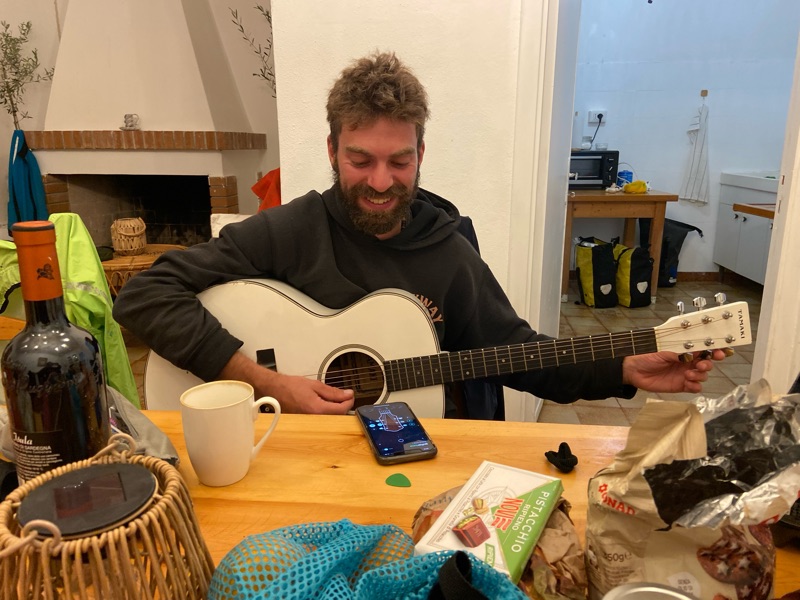 After a few days we ended up in a fishing village with wind blowing so hard it was comical. We exploded into the house we rented trying desperately to dry every single thing we owned. Robin played the guitar with my Crayola pencil and hair tie as a capo, I told him about singing Bohemian Rapsody with Brando on a stage at Mount Versuvius and he strummed the cords telling me to sing  “this ones for you!”. The house had no heat and we were all bundled up. After playing some card games, I asked everyone what is your most ridiculous item was? Enicho and kloe made us laugh hard after pulling item after item of ridiculousness from their bags, a collection of dead bugs, a karaoke microphone, a tambourine, a clarinet (which kloe played Emilien Veret and wow’d my soaking wet socks off) a feather bowa, five books, a whole pharmacy and basically a bike shop from their bags, PLUS Knick knacks and gifts from the people they met along their journey from France to Greece.