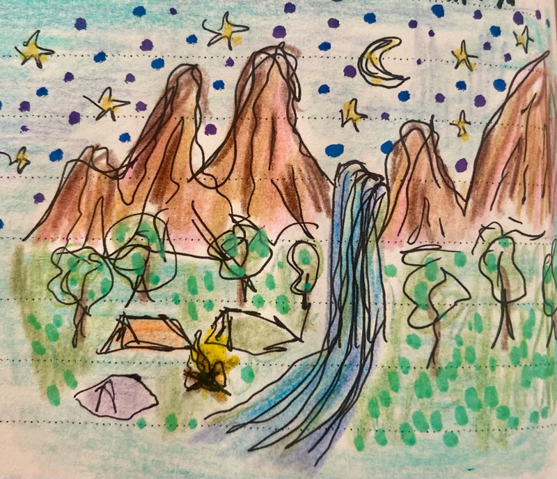 We ended up going down a broken path in the dark to the beach, one you could actually see from the cliff we met on but was challenging to get too. We had the beach to ourselves and explored the leftover Spanish castles, talking about art and you’ll never guess what else…high-lining. Davide also partakes and studied circus’ing in Spain. It felt really good to be breaking my nightly routine. We made lentils and cooked some veggies and I I told him about “Art for Action” a group I started with my friend Kassia on Saltspring, a place for artists to work on projects in a collaborative space while discussing climate change and how art can be in protest. But he didn’t respond, he shut down and stopped talking, I asked if he was okay, and he said “I’m just coming back to the present moment” and without another word went to bed. I felt confused and went for a walk on the soft beach. Where several shooting stars shot passed, so large they looked like cars overtaking along the Milky Way.