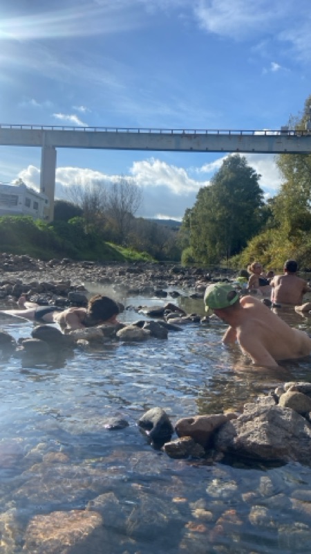 Robin left to head to Corsica and back to France to suprise a friend for their birthday and we stayed because there was a pizza party. (The best homemade pizza ive ever had made by a German named Yoshi). At the party they pushed, why were we leaving? Many any of them expressing they were sad we were leaving and I kept questioning  why I was even there in the first place? Especially after hearing about it so many times…what did it all mean? (I was re-reading the alchemist and re-learning of looking out for omens along the journey). I never really found an answer or maybe didn’t stick around long enough to find it, the next morning I powered up and out of there, waving goodbye to everyone having breakfast in the mud and we headed to some natural hotsprings where I dunked my tent and psyche in the warm waters rinsing the strange few days off.