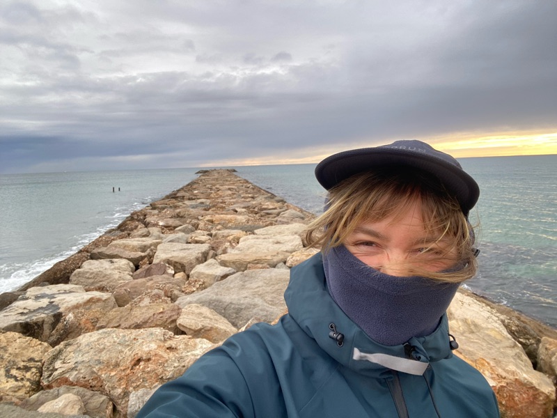 Leaving Barcalona was a shit show. I almost got hit by a few cars, personally almost ran over an entire family crossing the street, I kicked a guy as I swung my leg over my ever growing bike gear. I randomly biked by a group of people who won some form of lottery, crying, popping champagne, screaming at the tv cameras in their faces, as confetti popped. I felt stressed and passed by a churro stand and stopped to try some, craving something warm amongst the never ceasing winter rain. The day was long and the grease sat heavily in stomach all day like a hug around my guts until I arrived to Stigis, where I splurged on a hotel (after many not great sleeps in the solo snoring dorm) the man working their grabbed my pink hands when I arrived and it felt like family welcoming me in for the night. A warmth unmatched by Italy. Not to mention the most epic buffet the next morning that I filled my boots with.