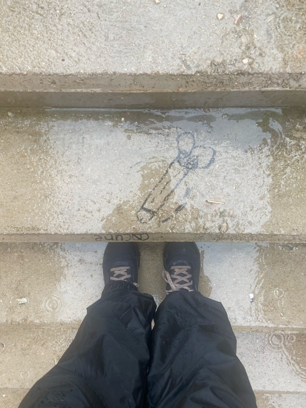 I took the first photo to share with my grandma that I was finally sweaty, but a second later was drenched instead by rain.