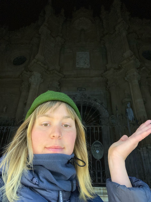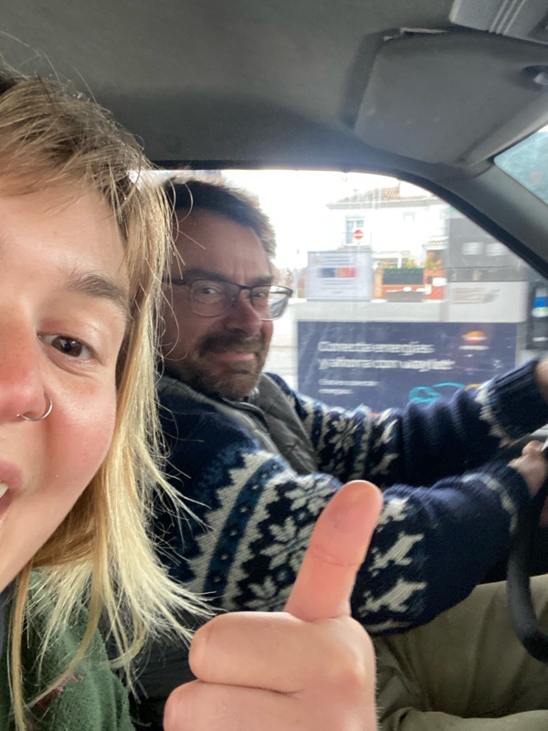 In Spain I had found my groove between riding and resting, keeping warm and being present. I biked through, underneath and alongside gorgeous Sierras. Spain was learning to ask for what I need, a ride in an RV, a cuddle, a warm bed. I felt full. It was empowering. The idea you can just ask for what you need…and even get it! It’s often only through writting these blog posts within reflection that i get some Aha’s as I try to make meaning and sense of this trip as I bob along it, and the meaning making also isn’t static, it can change and re-arrange itself if it needs, as I grow and learn. It also helps me feel connected to you- internet void that isn’t a void at all but, *gasp* my community! Who through reading helps me feel so supported and valued and loved! I’m taking to you Rosie, Riley and Kelsey, my mom, uncle Danny, Grandma, Auntie Terra, and Uncle Ernie and Sheila, and Bonnie. (These are my very dedicated and known readers)(if there are others plz announce yourselves).