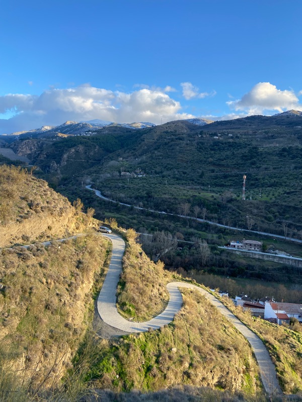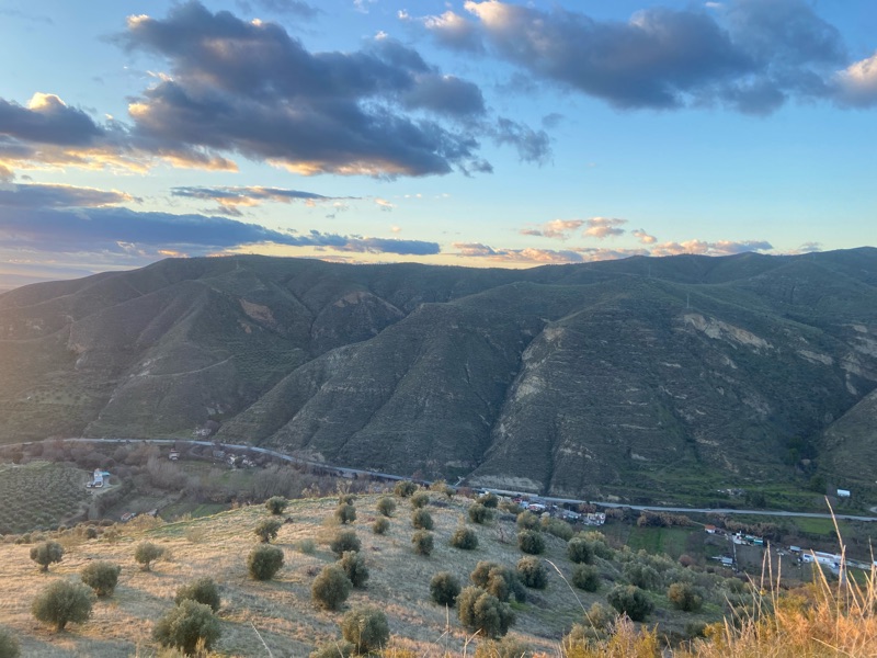 The next morning I was elated, full of energy and excited for adventure. Surprised too, I had questioned often in the last two weeks where my gusto spirit had gone. Did I want to keep cycling? Was I still having fun? I wasn’t sure! Another tip of my toque to what rest can do, I was restored! That day was one of my favourites of my whole trip, maybe because I was just so grateful for it. I felt grateful for Granada as I cycled away from it and stopped at the stop of a hill, looking back at the pretty city with snowy peaks and I felt I really would return one day. David and Angeles drove to the community house to watch me bike away and we all said a tearing goodbye. Except Roy, who was weird in the morning, shoving me out of his heart like a pirate ship made to walk the plank but I didn’t care, because everything that day felt like it opened up, the morning frost melted and there was sun all day long. I passed people who were next level excited to see me yelling OLΓ and cheering to me from the sidelines. It felt like a confirmation from the world that I was meant to be amongst it, and it was all going to be OK. I passed rock, climbers, rivers, and streams Olive Groves with the backdrops of snow covered mountains, my knees ached a bit after being off the bike for a while, and again I couldn’t believe that three months had passed, and my time and in Europe was finished…for now.