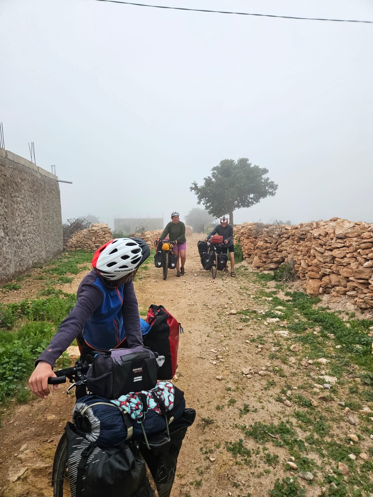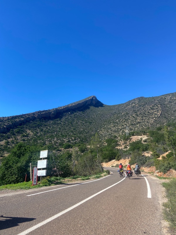 I have been travelling with a French family of mom, dad, two teenage sons who are on their bikes for a year and Basil, another Frenchy from Grenoble who is very sweet, paraglides, and is going the same direction as me. I now most days am speaking more French than English. On the route right now includes a man who had set out to complete the Mountain Atlas race (bikepacking race) as a duo but his partner got extremely ill and they dropped out quickly into the course, so now he’s just spending his two weeks biking around, and a couple from Holland is here too, they are fun and served an awesome pot of couscous for dinner tonight that we all added sometning too. Is this pot of couscous a metaphor? What a ridiculous group of people, all travelling in our own ways, yet similarly via bicycles in Morocco. Theres a famous bikepacking route that is split into two parts and runs the entirety of Morocco titled “Route of the Caravans” and I have found myself at the beginning of it, travelling in a 10 person Caravan, a self created roadside pilgrimage.