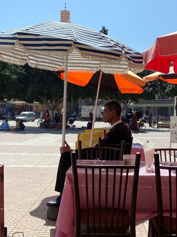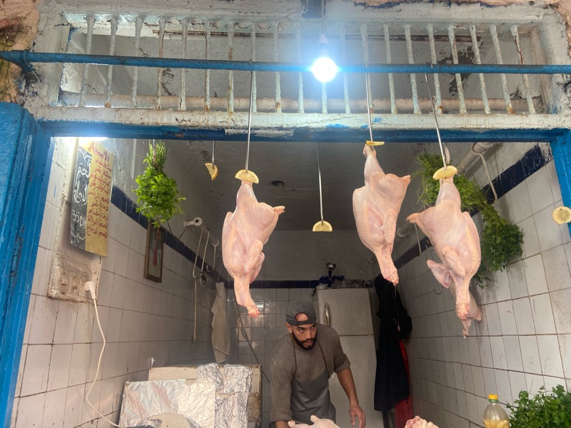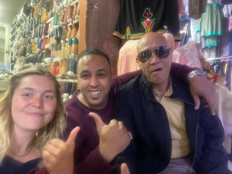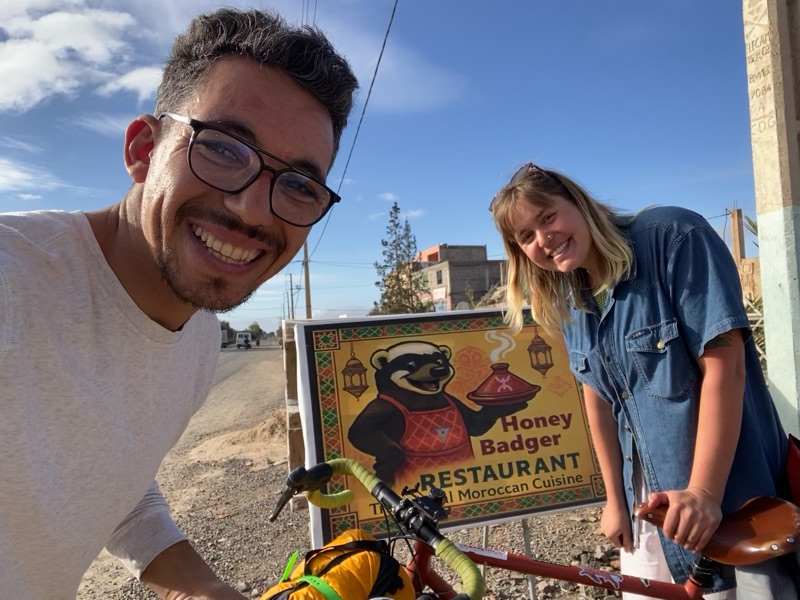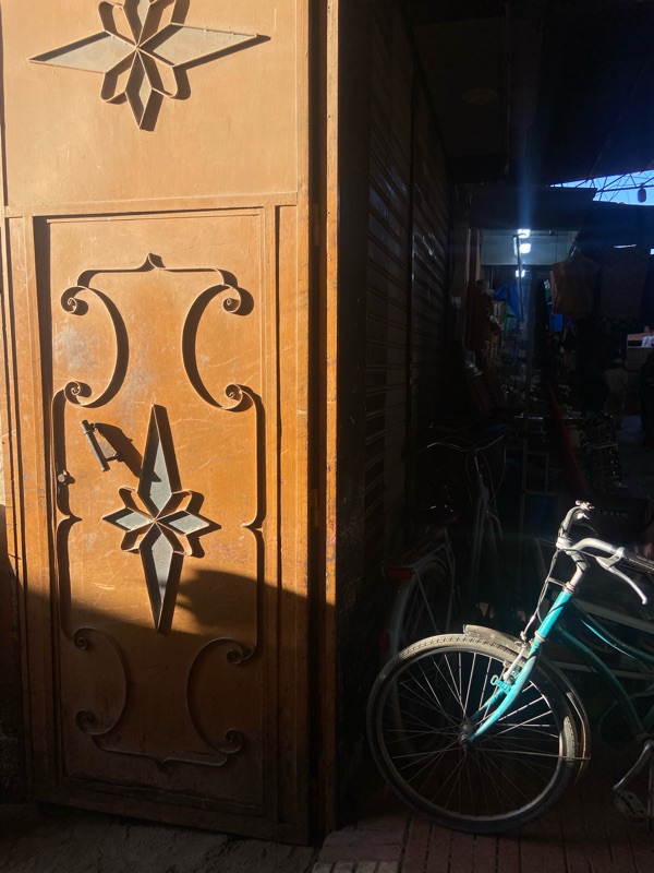 The fix the mechanic did was interesting to say the least, but hey, future Hannah is here to say it’s doing the job! I asked Jad if I could buy him dinner to thank him for his time and he agreed but said “the Morrocan way.” Jad took Tannum and I, weaving effortlessly through the Souks via our bikes to where we bought spices, a whole chicken, vegetables, preserved lemons and olives from the market and brought the bags to a resturant and said we’d be back in hour to eat. A very normal way restaurants do it here. We paid the resturant $5 do cook it, totalling the entire meal at about $10 (with leftovers for the cats). Jad gave us a Morrocan history lesson as we ate that was a bit hard to follow. Tannum went out partying that night (I went to bed early trying to recover from my cold) and he met people who knew Jad, said they love him, he’s such a nice guy, but they wouldn’t take history lessons from him.