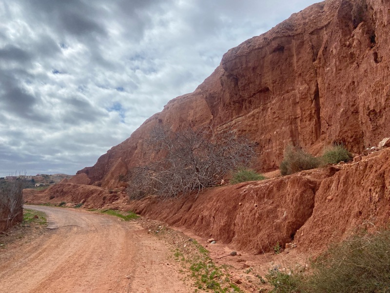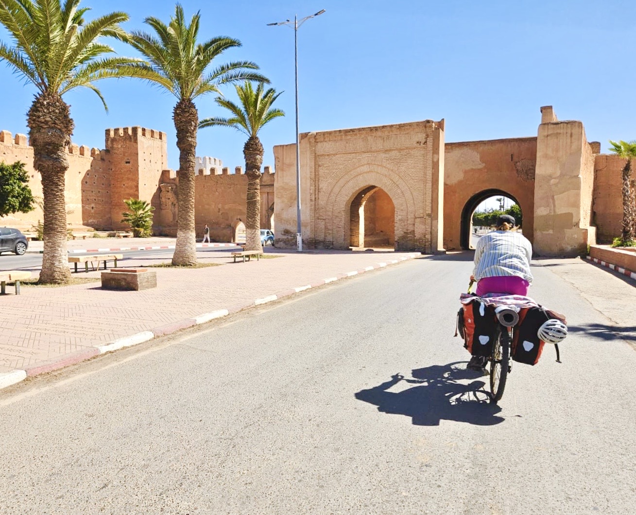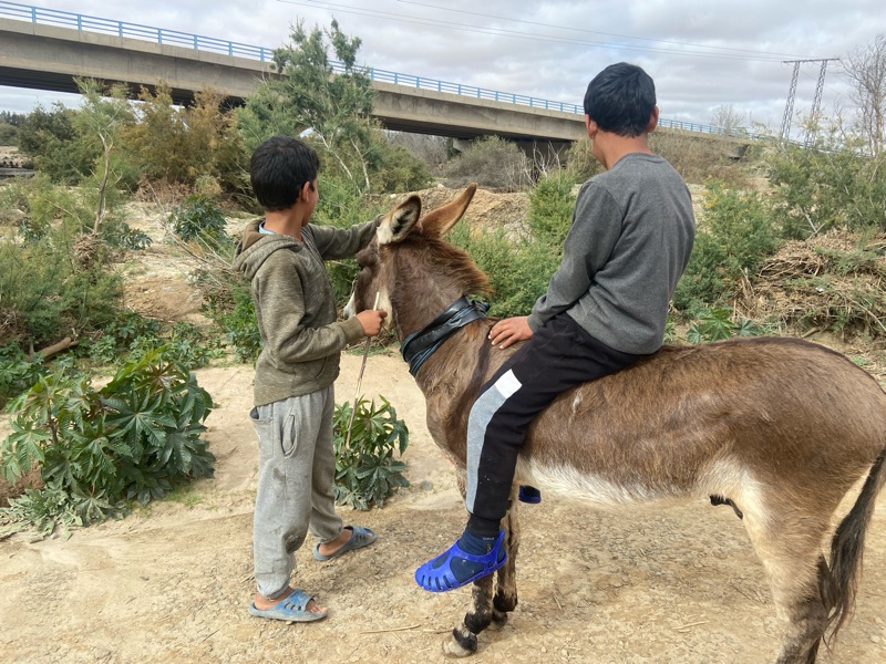 The sun is actually hot. I am actually sweating. Possibly even burning. I’m at a restaurant outside of Agafay. A young boy goes by on a donkey. All day I’ve passed children working and I wonder… is it good for kids to maybe work a little? Is that an obscene thing to say? My cream pants are completely covered in mud and ripped from this morning leaving Marrakech. Despite that and the crazy traffic close to the main square it was hands-down the easiest capital city to leave of my trip yet. After weeks of not biking though I now feel woozy from the sun, lack of water and big emotions. A young boy just biked alongside me asking for money then saying “sex sex sex” and pointing at what I now realize was the topless mermaid sticker on my bike (from my first bikepacking trip with Kassia to Hornby Island). It feels wrong to tie some string over her exposed breasts, but it also feels wrong to have her front and centre in a Muslim country on my bicycle.