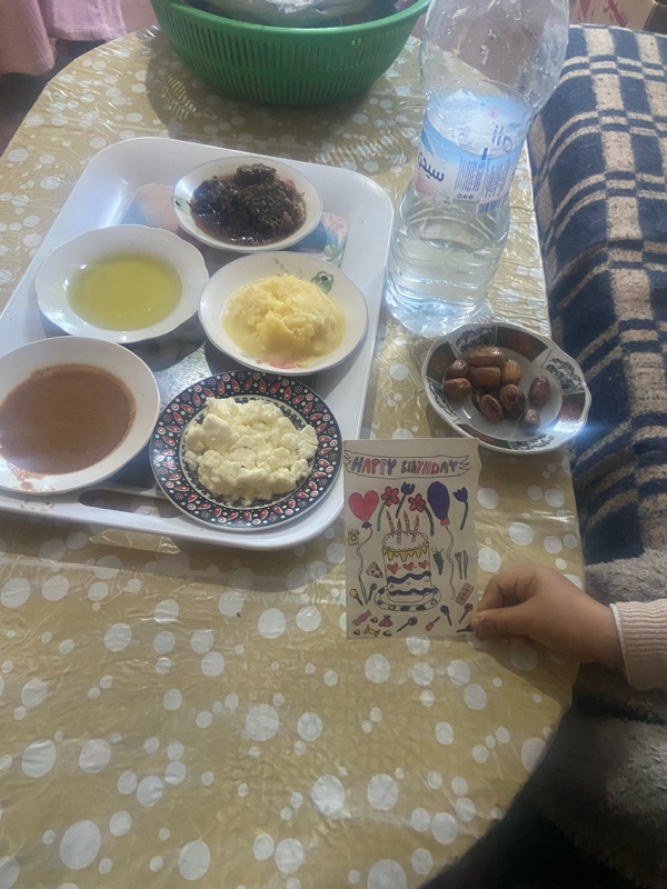 -A man biked by me and invited me to his mother‘s house to eat in French. I felt strange but I could see her house from the road so I decided to try. He ends up leaving and I end up eating lunch with his wife of 22 and their her son Youssef who is a joyful little bean, jumping, making playful sounds and high-fiving and holding my hand. Kid after kid comes into the cement house to peer at me, the house that is completely empty except for the bedroom with the bed and TV playing strange cartoons in Arabic .