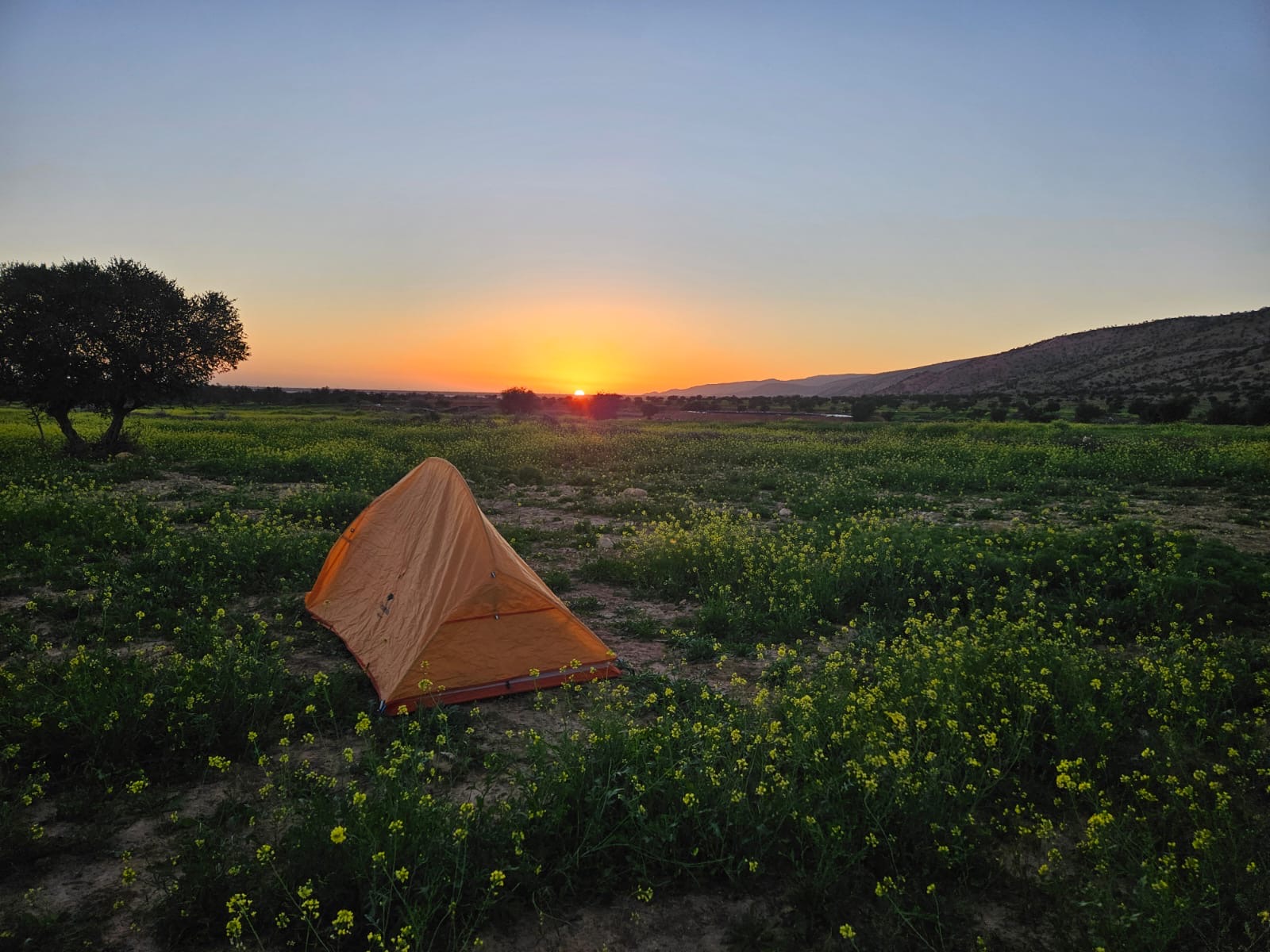 The landscape changing from the desolate barren yellow to a fruitful electric green. I stop at a fork in the road to check my map. A man askes me where I am going, the 12th man of the day, of the hour, it feels like to do so. I hesitantly tell him and he pulls out his uniform from the back of the beaten up 90’s Volvo, it’s the po-po! His is name is Muhammed and he wants to escort me the rest of the way he says in French. Completely unrelated public masturbation that just happened. I was honestly thankful for the guidance. The steepness of the up and down hills were cranked up and he was like a coach i didn’t ask for, waiting for me with an impressed smile at the top of every one of them, as I slowly cycled up. We’d meet on the top and he’d drive down and up the next one, waitting on the crest. Many People stopped to happily chat to him and pulling up beside me on their motorcycles to talk to me. Including a confident 14 year old asking me for my number. Which I of course gave to him. (A little too old for ya kid is what I actually said). The sun hangs low and a family joins Muhammed at the top of the next hill to watch the one person specticle. I arrive, red faced, and they invite me in for tea, I accept. They radiate kindness and have trusting, curious eyes. They own the olive pressing mill in town and the workers, Muhammed the cop, me, and the sister and brother from the family share mint tea and cookies outside around a tiny table. They tell me if I like, I can stay the night with them. I weight my options, the alternative being another 30k’s and sleeping at the police station. I again accept.