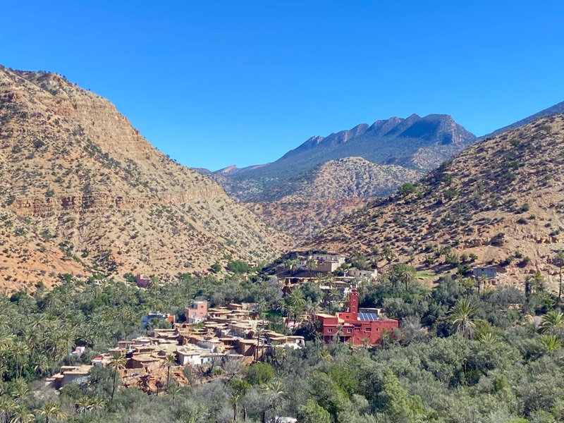 -I hated the busy highway and looked at my map and decided to veer left to a road that went underneath the famed Atlas Mountains to a town called Imantanout.