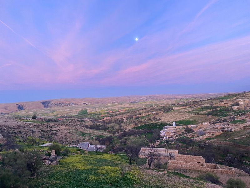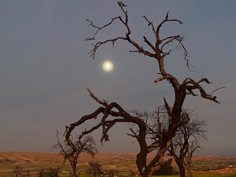 I am still in awe of their generosity and how they just welcomed me, this random white girl off the highway, right in! Feeding me, even tried to clothe me multiple times, welcoming me to their ancestral event. On the morning I left, as I gathered my things, one of the older women took off of her ring and slipped it on my finger. I felt sad to say goodbye and they kept asking me to stay or at least come back. I said my goodbyes but as I walked my bike to the highway, another police officer greeted me and got to have the best day of work, paid to escort me 20k’s, again, stopping at the top of every rolling hill and taking videos of me. At the end of his service he bought me a stale chocolate bar from Spain, 2L of water, some juice and said it was a wonderful experience for him to be my guide. I felt a little scared once he left but the day was uneventful really. An easy day of tire against hot asphalt beside fields of tiny orange, purple and yellow wildflowers. I continued to have bike problems and I called it quits and walked deep in some African brush where I camped under an Argan tree ( I always feel safest under a tree), just outside of Essauoria. The Snow Moon was full and as it rose I realized it’s the most consistent thing in my life right now, marking obvious chapters of the last few months. I lay awake all night as waves of terror run through me. If all that happened in broad daylight, imagine what could happen in the night? I spent the night imagining all the possibilities and thinking of scorpions and listening intently to the what breaks the silence of the night.